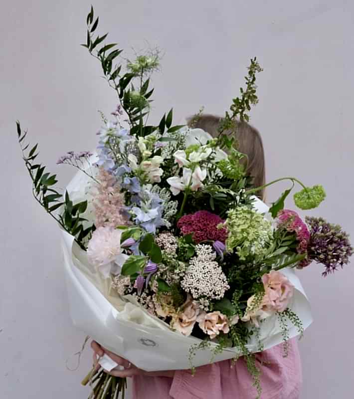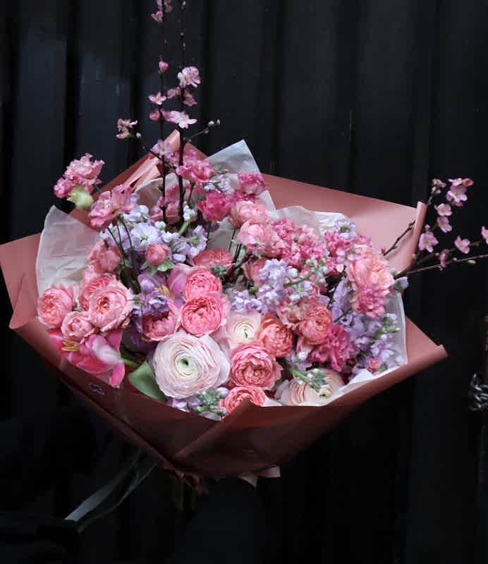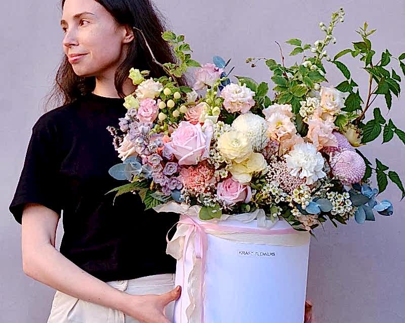 Мы их делим в основном на два вида: на впечатляющие своим размером и на букеты с интересным составом. С первыми все легко — лучшие варианты цветов: моно в огромном количестве или классические сочетания в формате L и XL.
