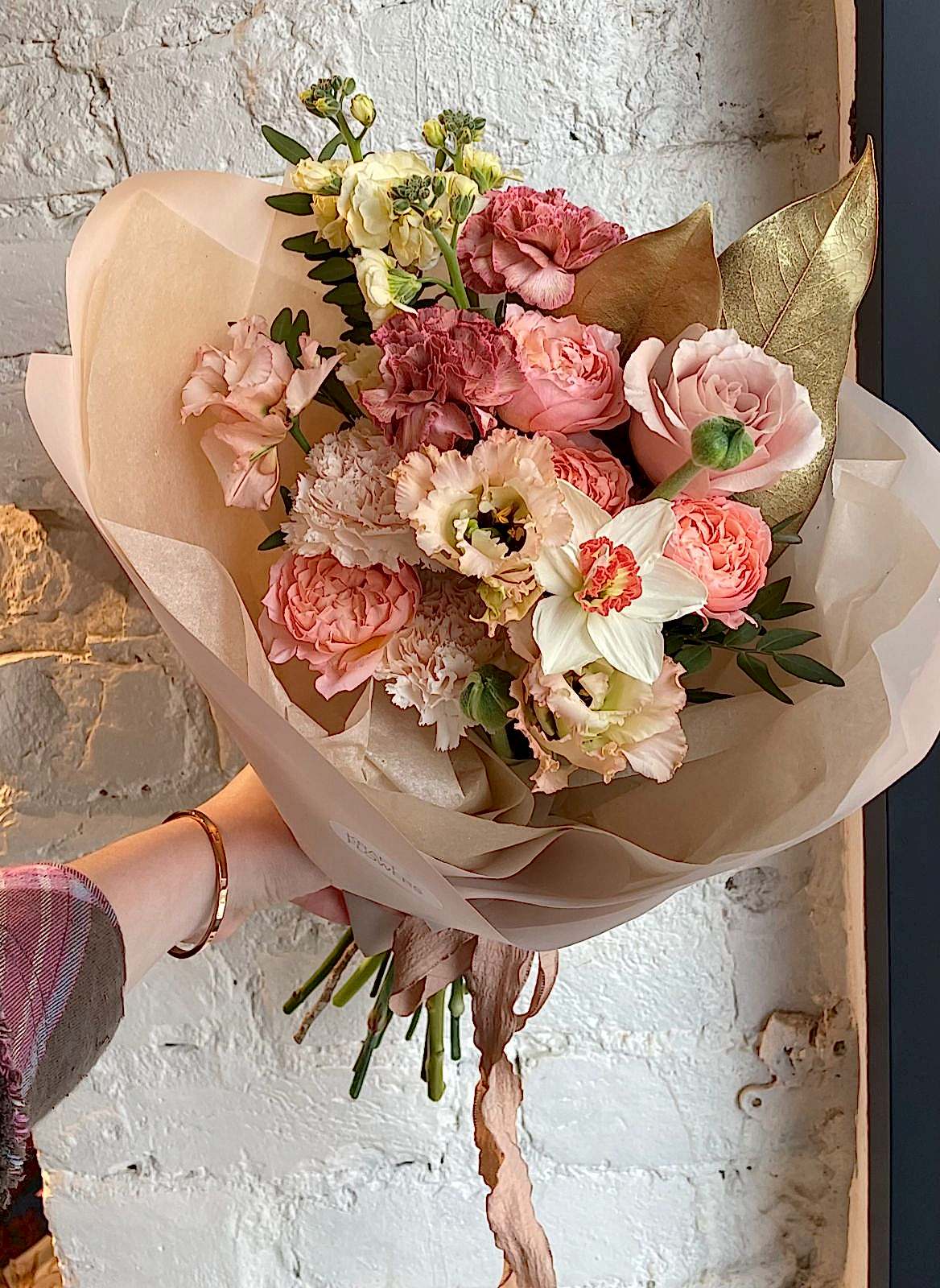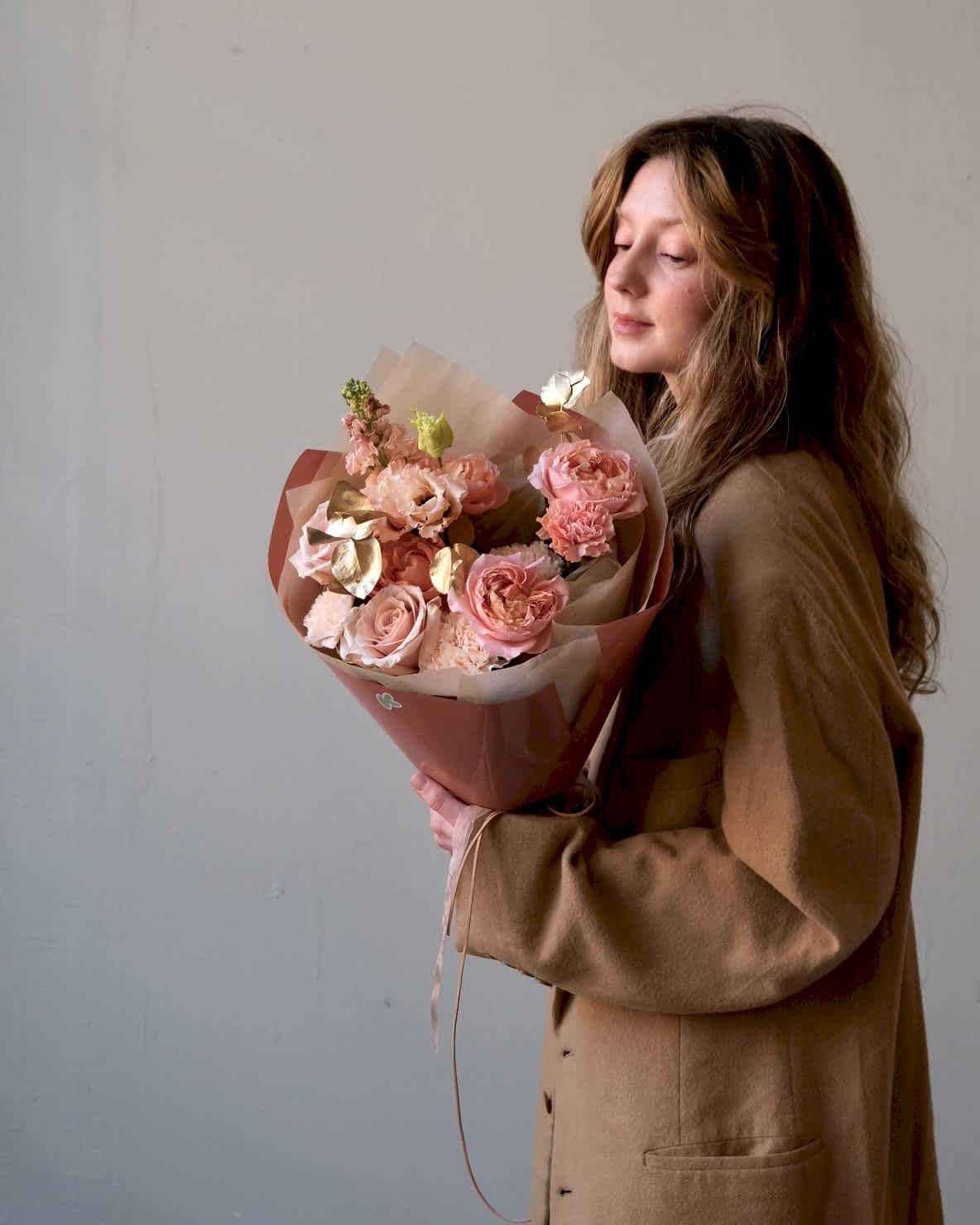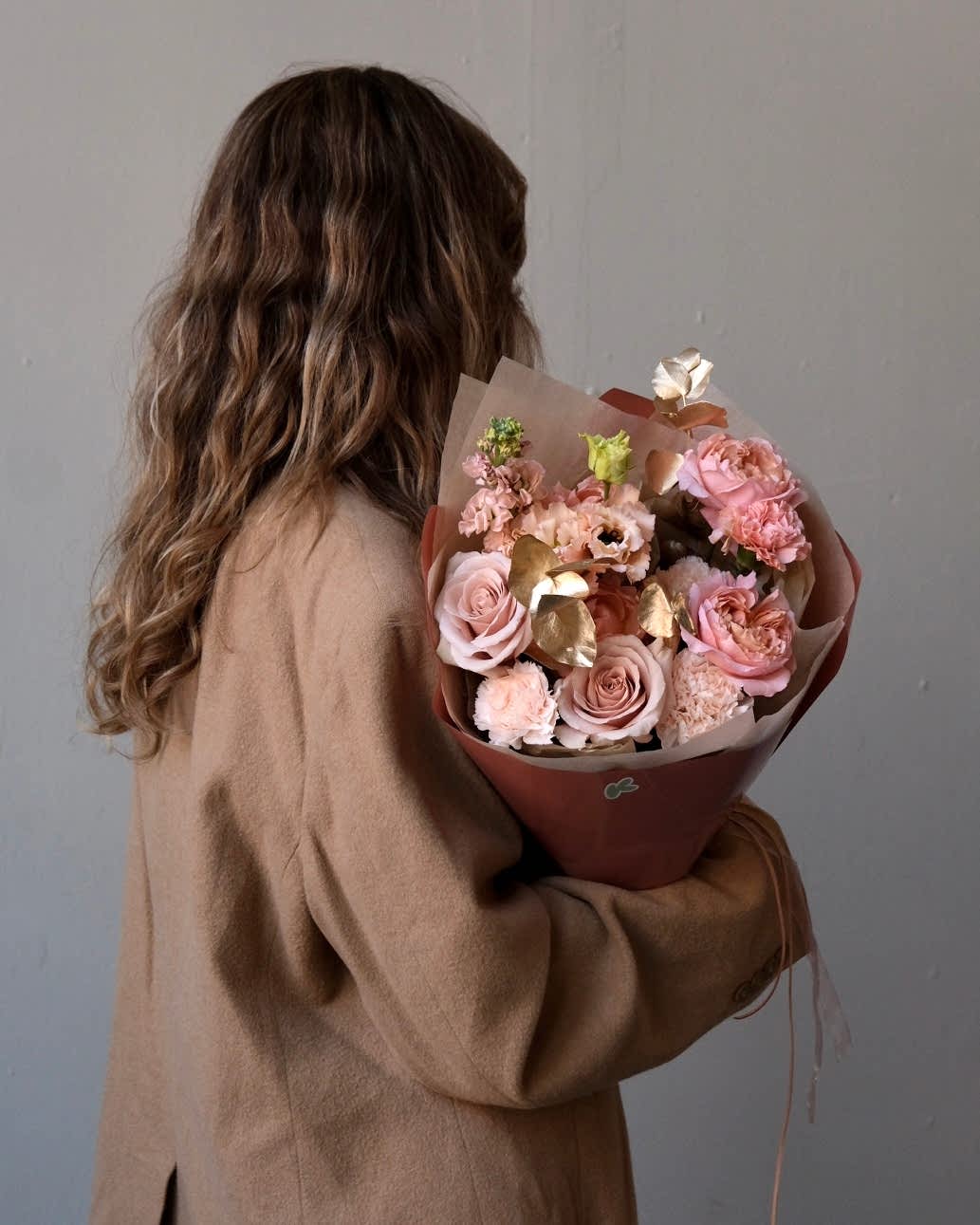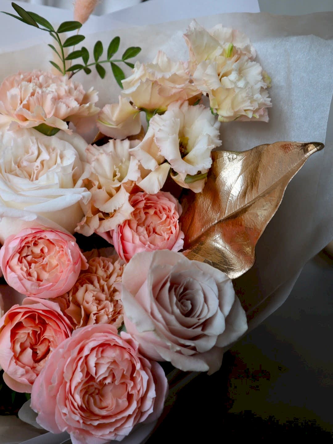 Сочные кремово-персиковые цветы и изящные золотые веточки были созданы друг для друга, поэтому оказались вместе в одном букете!