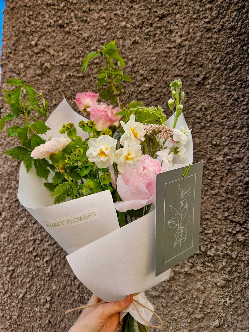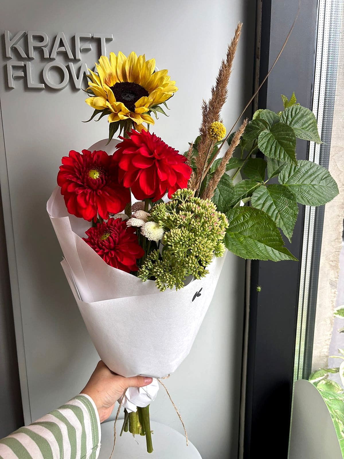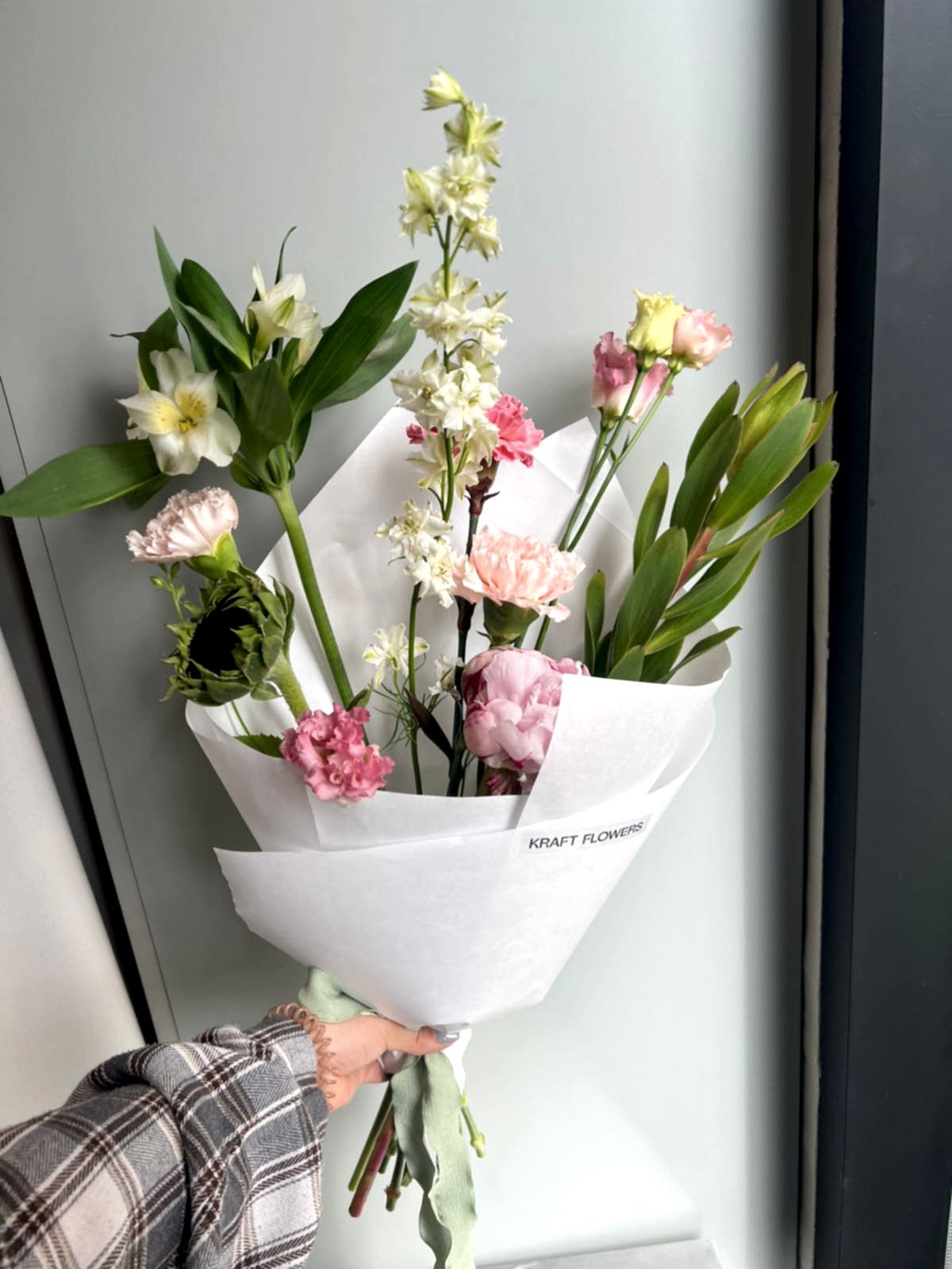 \nСтойкость букета: средняя, выше средней.","category":"Выбрать букет на заказ/В сезоне","url":"/catalog/sezon/okhapku-domoy/","brand":{"@type":"Brand","name":"Kraft Flowers"},"sku":15568,"offers":[{"@type":"Offer","url":"/catalog/sezon/okhapku-domoy/?pid=29478","sku":"S","priceCurrency":"RUB","price":3250,"itemCondition":"https://schema.org/NewCondition","availability":"https://schema.org/InStock","seller":{"@type":"Organization","name":"Kraft Flowers"}},{"@type":"Offer","url":"/catalog/sezon/okhapku-domoy/?pid=29479","sku":"M","priceCurrency":"RUB","price":4200,"itemCondition":"https://schema.org/NewCondition","availability":"https://schema.org/InStock","seller":{"@type":"Organization","name":"Kraft Flowers"}}],"aggregateRating":{"@type":"AggregateRating","ratingValue":5,"reviewCount":1},"review":[{"@type":"Review","author":{"@type":"Person","name":"Анастасия"},"reviewRating":{"@type":"Rating","ratingValue":"5"},"reviewBody":"Отлично )))"}]}