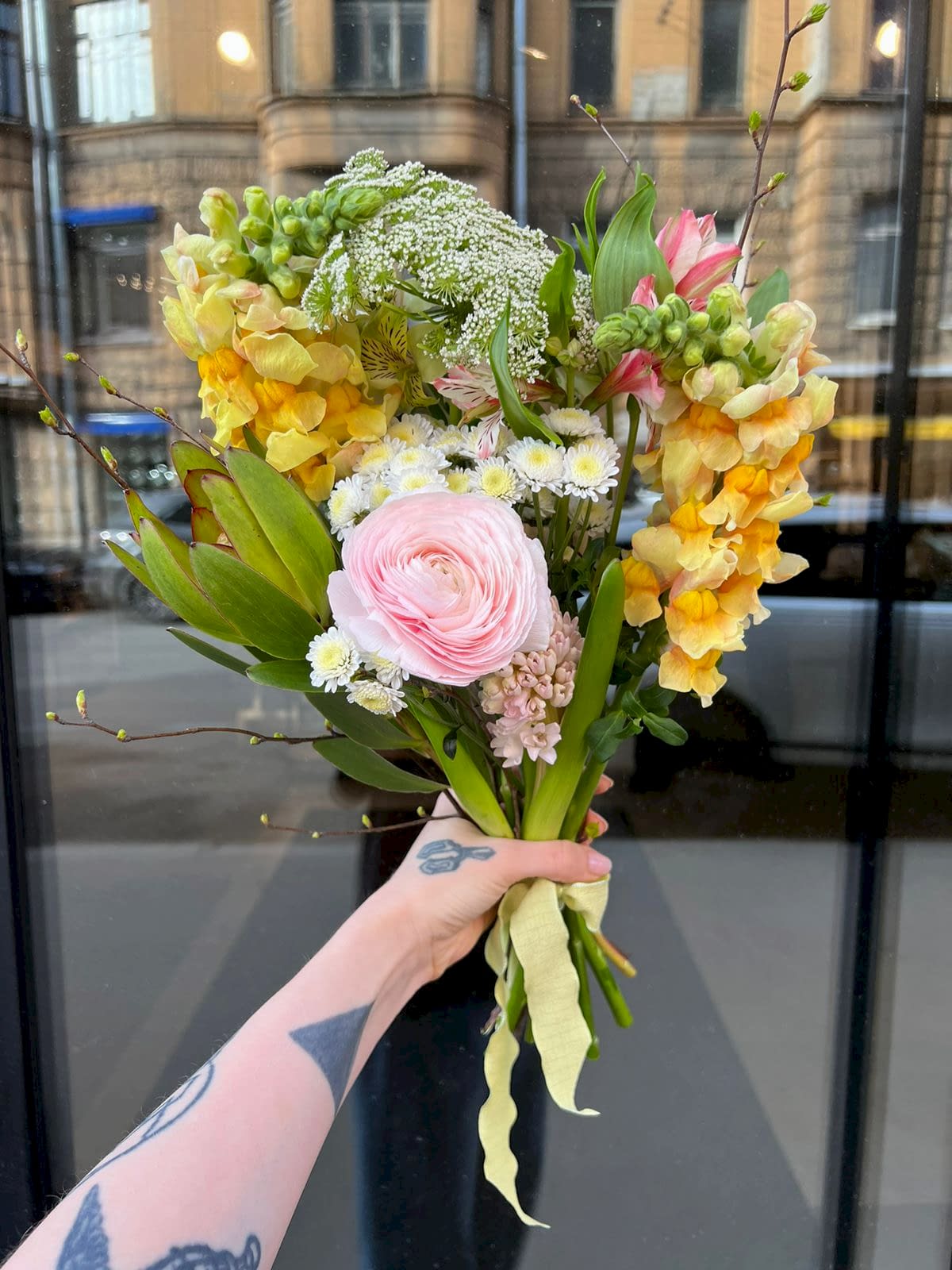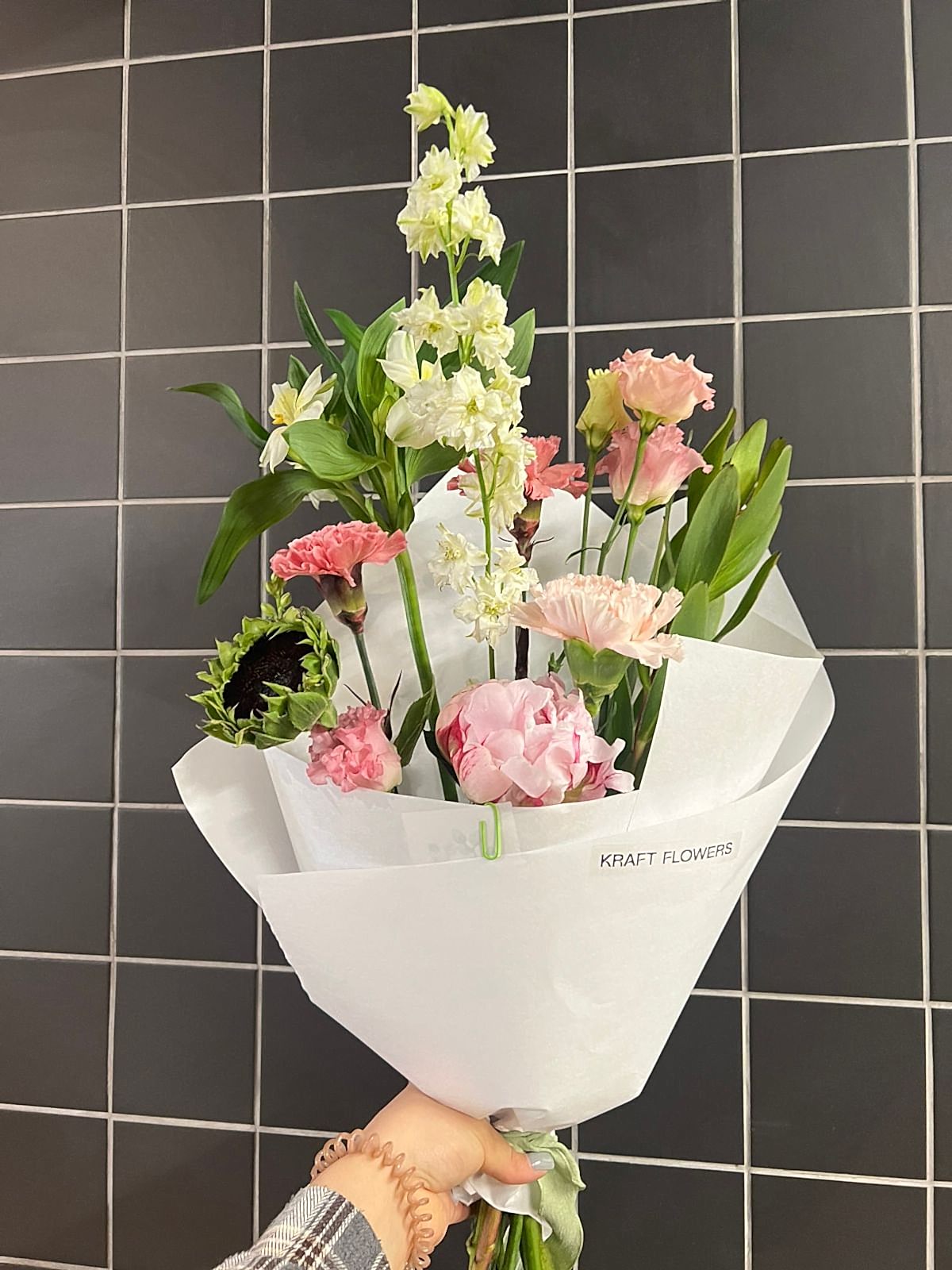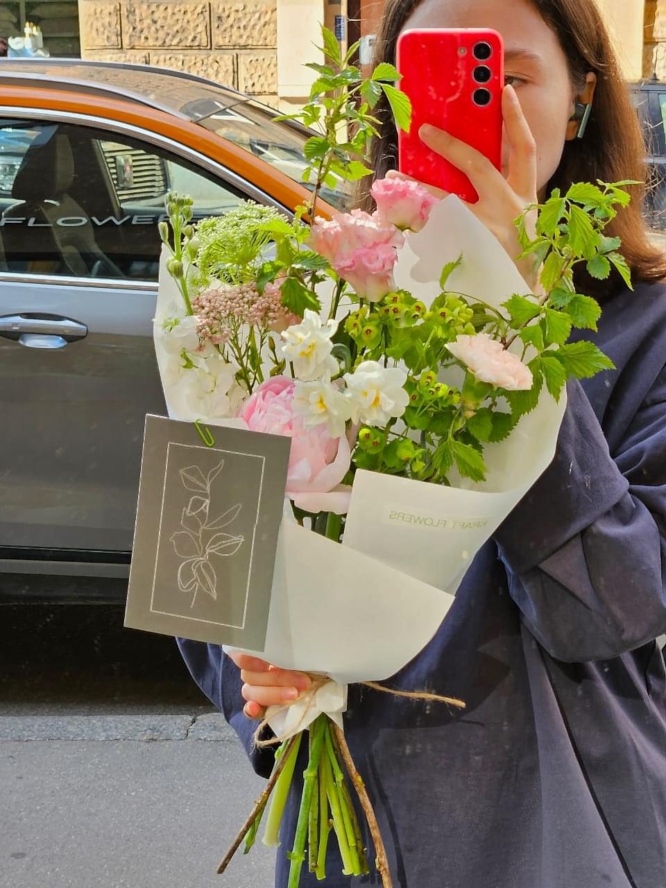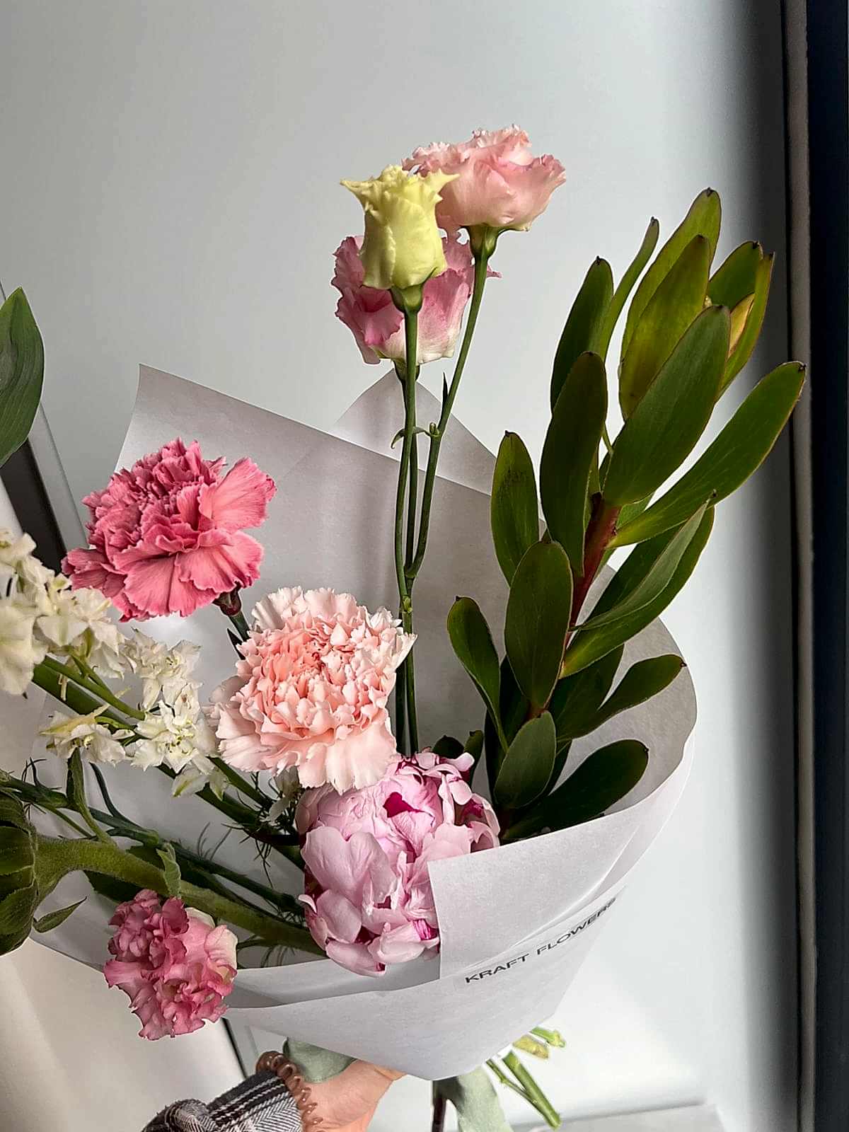 \nСтойкость букета: средняя, выше средней.","category":"Выбрать букет на заказ/В сезоне","url":"/catalog/sezon/okhapku-domoy/","brand":{"@type":"Brand","name":"Kraft Flowers"},"sku":15568,"offers":[{"@type":"Offer","url":"/catalog/sezon/okhapku-domoy/?pid=29478","sku":"S","priceCurrency":"RUB","price":3250,"itemCondition":"https://schema.org/NewCondition","availability":"https://schema.org/InStock","seller":{"@type":"Organization","name":"Kraft Flowers"}},{"@type":"Offer","url":"/catalog/sezon/okhapku-domoy/?pid=29479","sku":"M","priceCurrency":"RUB","price":4200,"itemCondition":"https://schema.org/NewCondition","availability":"https://schema.org/InStock","seller":{"@type":"Organization","name":"Kraft Flowers"}}],"aggregateRating":{"@type":"AggregateRating","ratingValue":5,"reviewCount":1},"review":[{"@type":"Review","author":{"@type":"Person","name":"Анастасия"},"reviewRating":{"@type":"Rating","ratingValue":"5"},"reviewBody":"Отлично )))"}]}