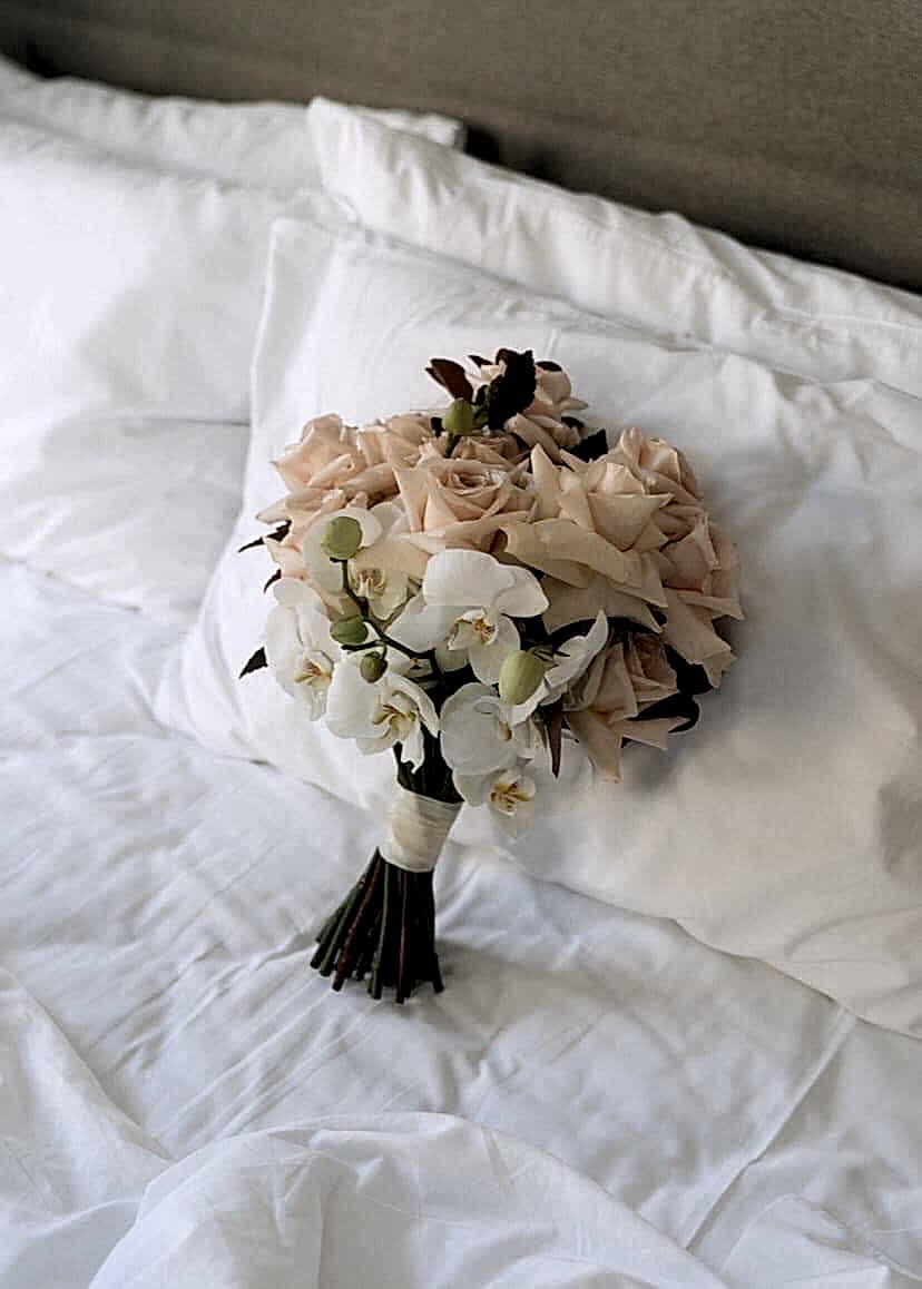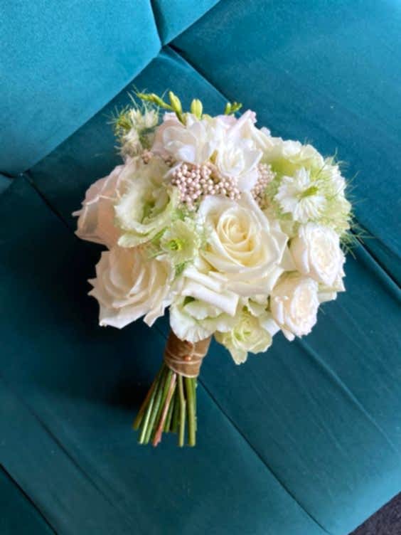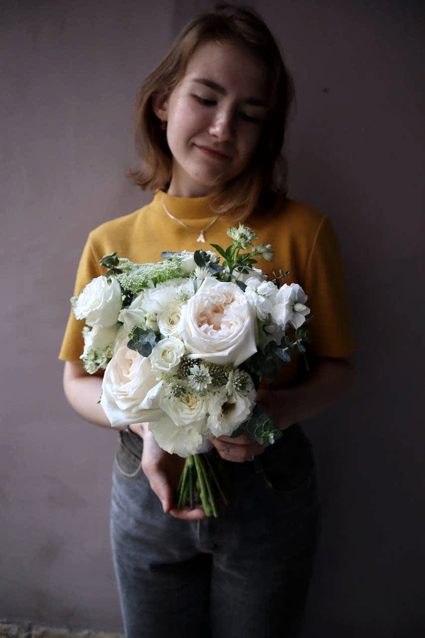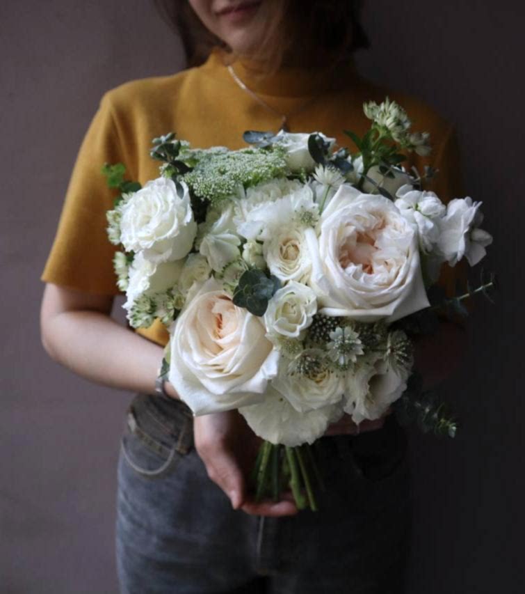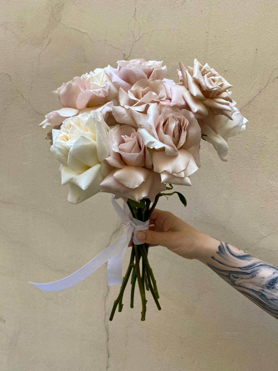 Изящный букет невесты из садовых английских роз сорта Джульетта.