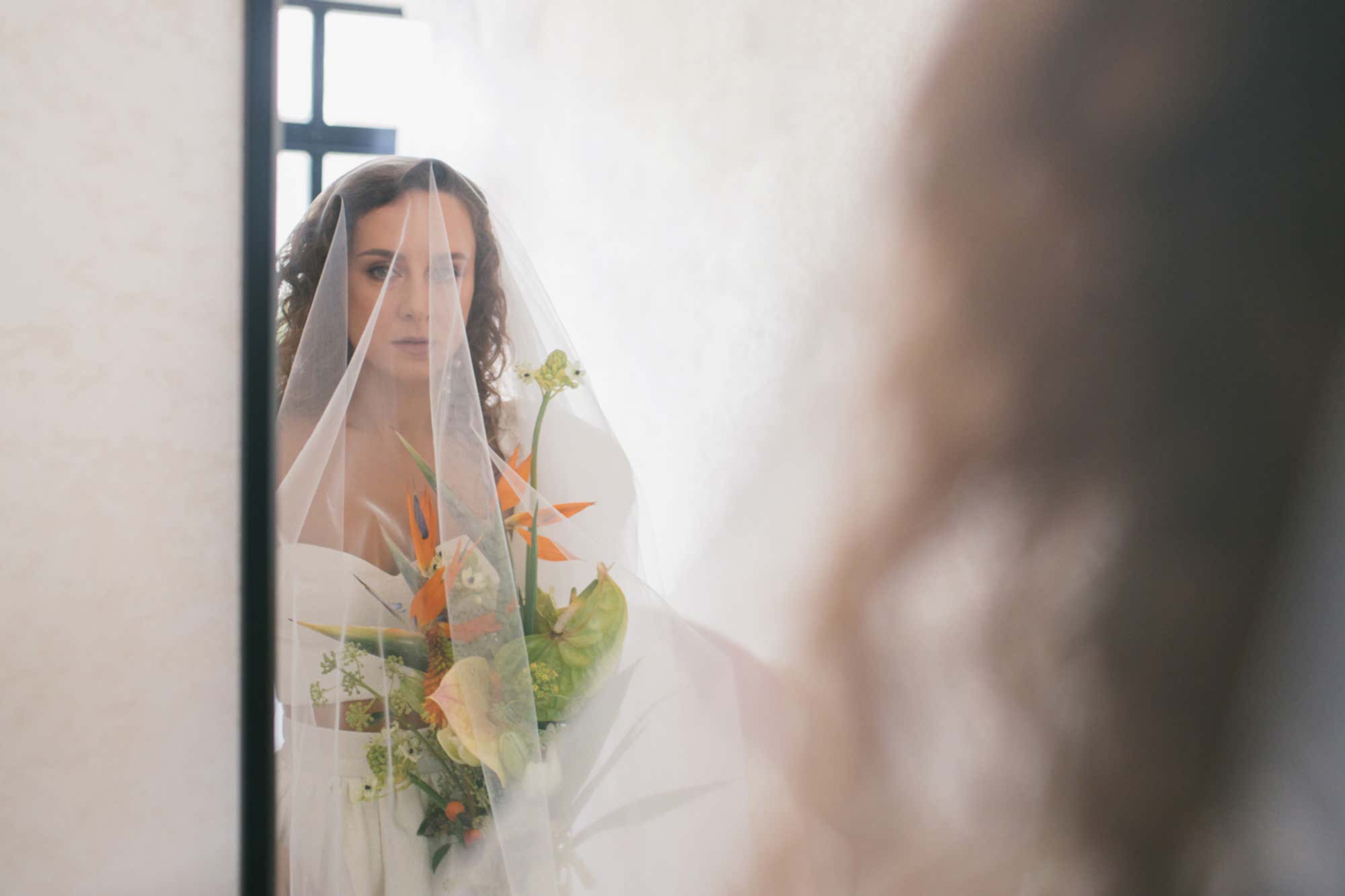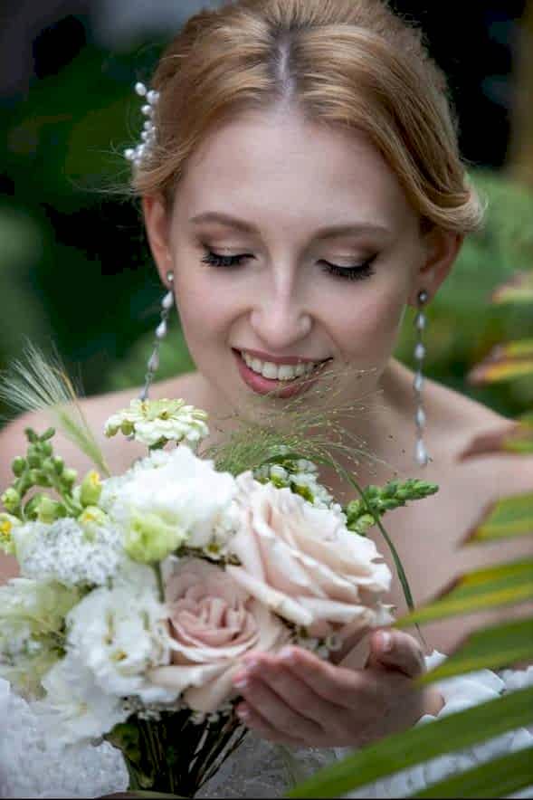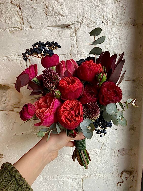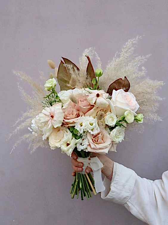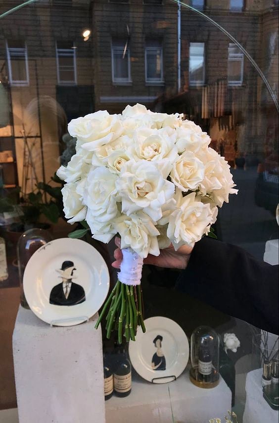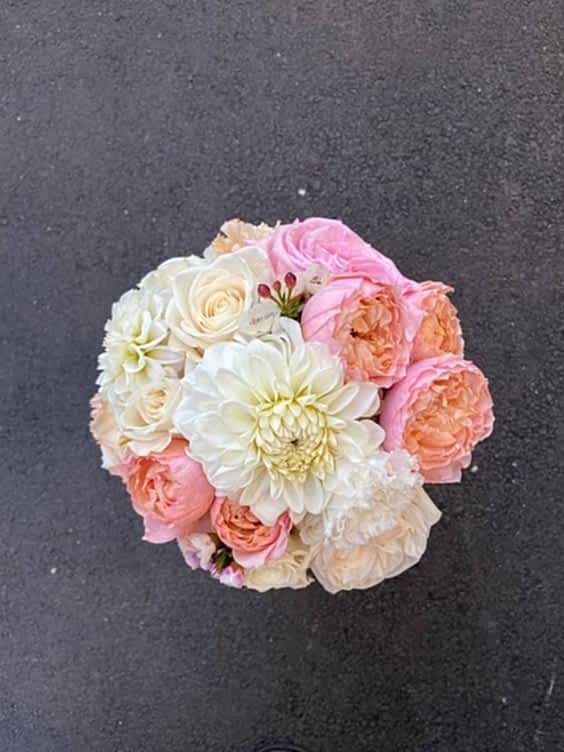 Изящный букет невесты из садовых английских роз сорта Джульетта.