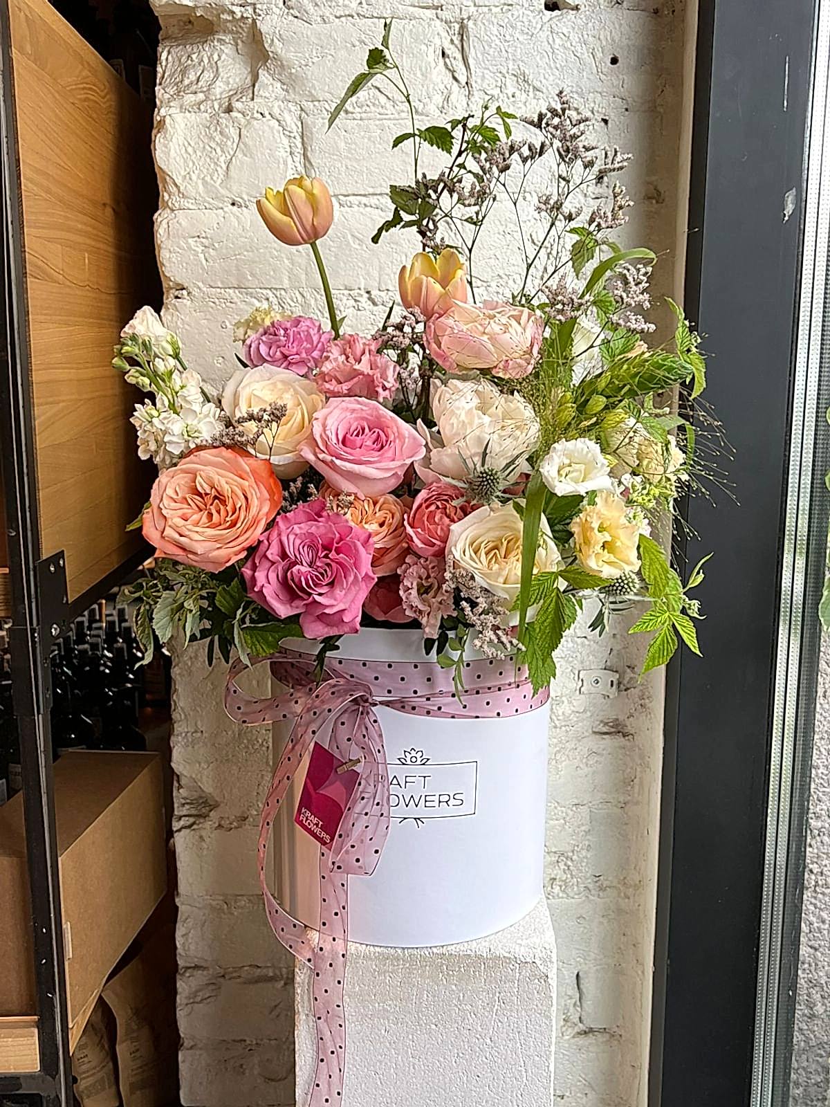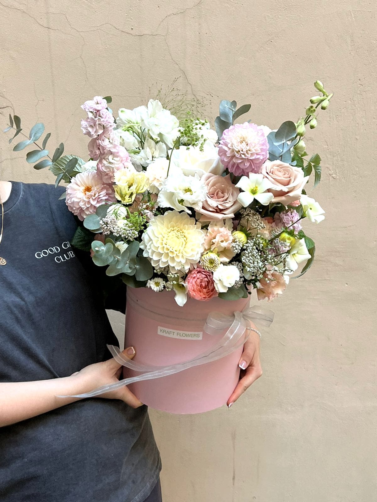 Учтем ваши пожелания: любимые цветы, детали композиции, цвет коробки и другие нюансы.