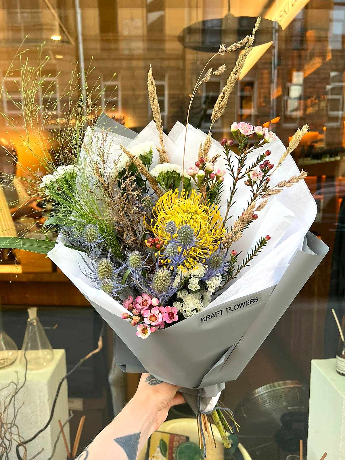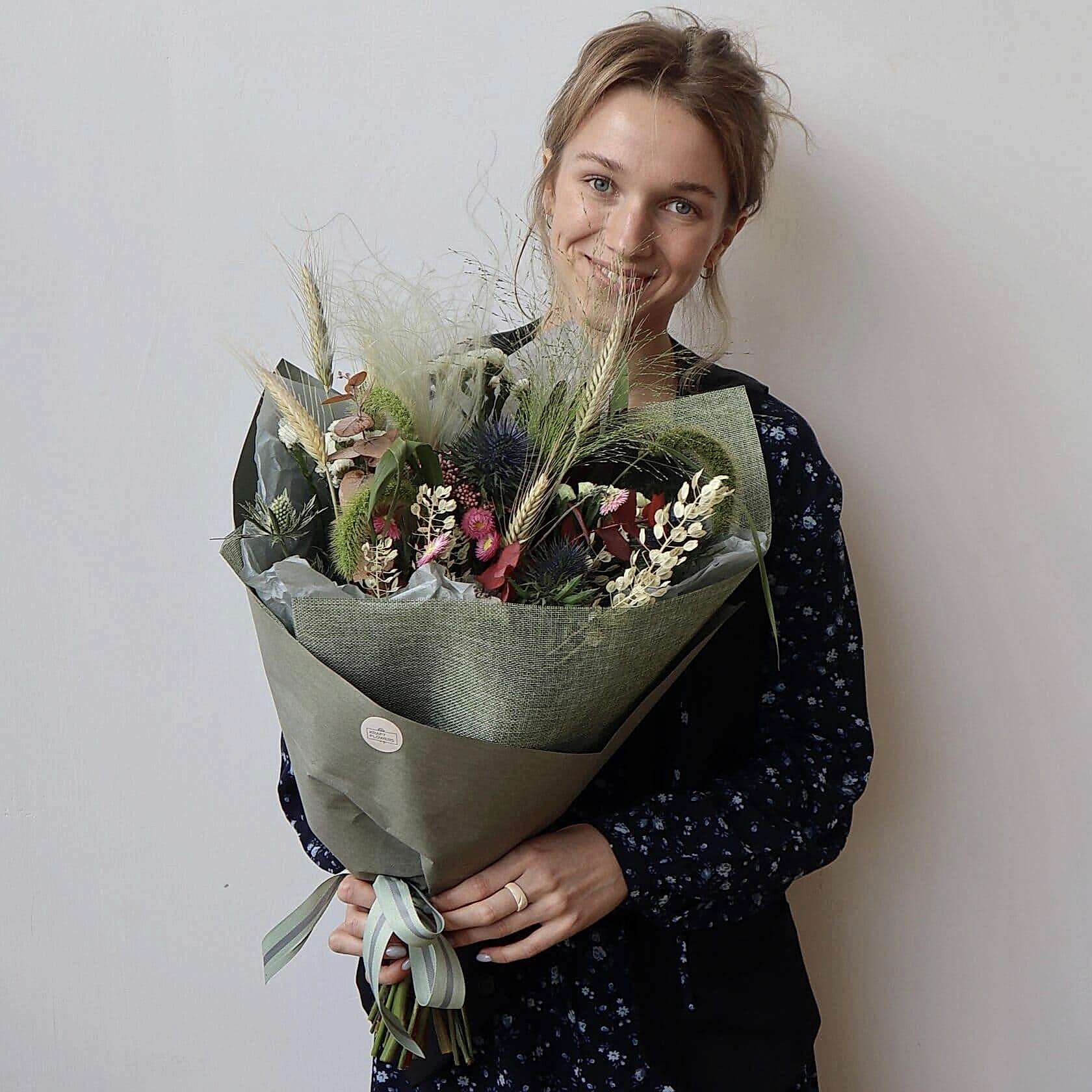 \nСтойкость букета: высокая. Превратится в сухоцвет. ","category":"Выбрать букет на заказ","url":"/catalog/tsvety/buket-s-prodolzheniem/","brand":{"@type":"Brand","name":"Kraft Flowers"},"sku":1115,"offers":[{"@type":"Offer","url":"/catalog/tsvety/buket-s-prodolzheniem/?pid=1116","sku":"S","priceCurrency":"RUB","price":2500,"itemCondition":"https://schema.org/NewCondition","availability":"https://schema.org/InStock","seller":{"@type":"Organization","name":"Kraft Flowers"}},{"@type":"Offer","url":"/catalog/tsvety/buket-s-prodolzheniem/?pid=4706","sku":"M","priceCurrency":"RUB","price":3700,"itemCondition":"https://schema.org/NewCondition","availability":"https://schema.org/InStock","seller":{"@type":"Organization","name":"Kraft Flowers"}}]}
